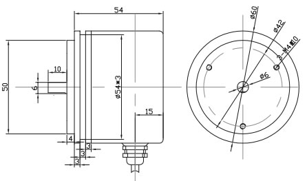 连接电缆: 1米屏蔽电缆径向侧出,其余长度可订货;或插座后出