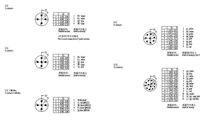 连接:1 x M12插座, 直型,最大的螺丝端子 0.75mm² , AWG 18